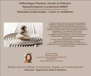Spécialités: Réflexologue, Praticien de médecine alternative, Psychothérapeute EMDR, Service d'hypnothérapie.
